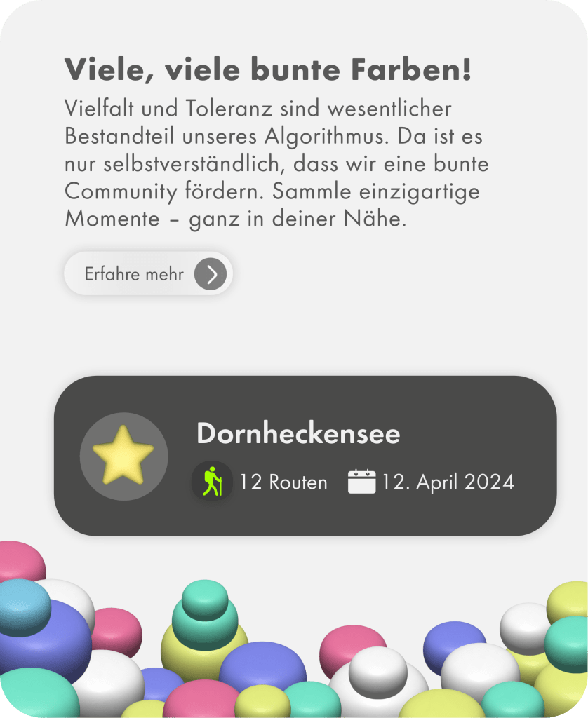 Auf der Suche nach dem ultimativem Wandererlebnis? Spüre dank AR entlang deiner Route kleine Naturschätze auf, finde versteckte Abkürzungen und genieß atemberaubende Ausblicke. Egal, ob du alleine unterwegs bist oder mit Freunden, wir werden dich mit interaktiven Herausforderungen und sich stets weiterentwickelnden Features begeistern.