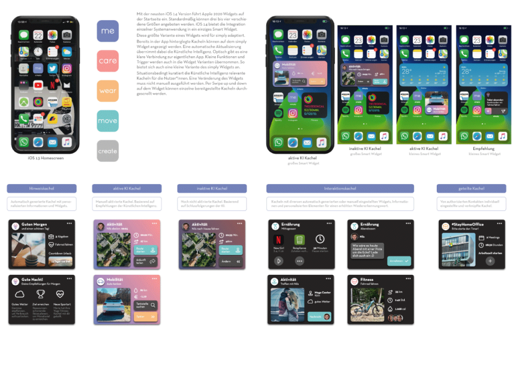 Ein perfekt auf persönliche Bedürfnisse zugeschnittenes User Interface Design gibt es nicht. Der eigene Lifestyle wird trotz Anpassungsmöglichkeiten vieler Apps nicht unterstützt. Die URAIS KI schließt nun diese Lücke. Sie analysiert die Nutzer*innen komplett individuell. Basierend auf erlernten Daten wird ein eigenständiges AI-based User Inferface generiert. Dieses kann sich flexibel weiterentwickeln und seine Gestalt verändern. Mehr Daten bedeuten ein punktgenaueres Erscheinungsbild für eine effizientere Lebensweise.